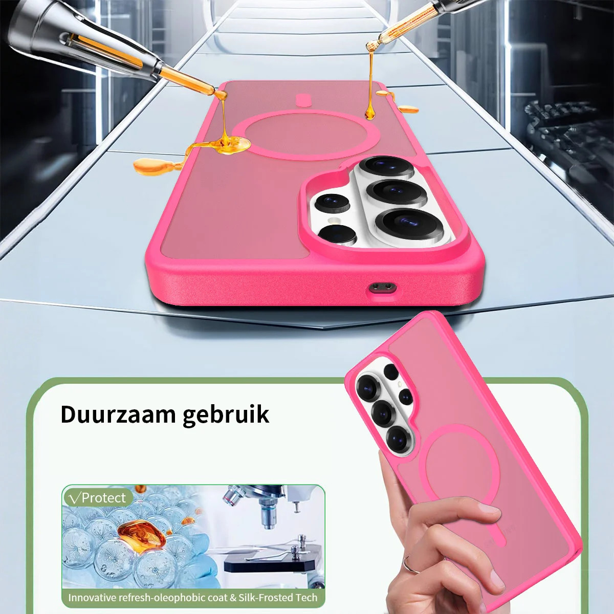 Het Solidenz FrostMag Samsung Galaxy S26 Ultra hoesje combineert stijl en bescherming met een uniek semi-transparant frosted design. Perfect voor wie de elegante uitstraling van hun telefoon wil behouden terwijl ze deze beschermen tegen dagelijkse gevaren.